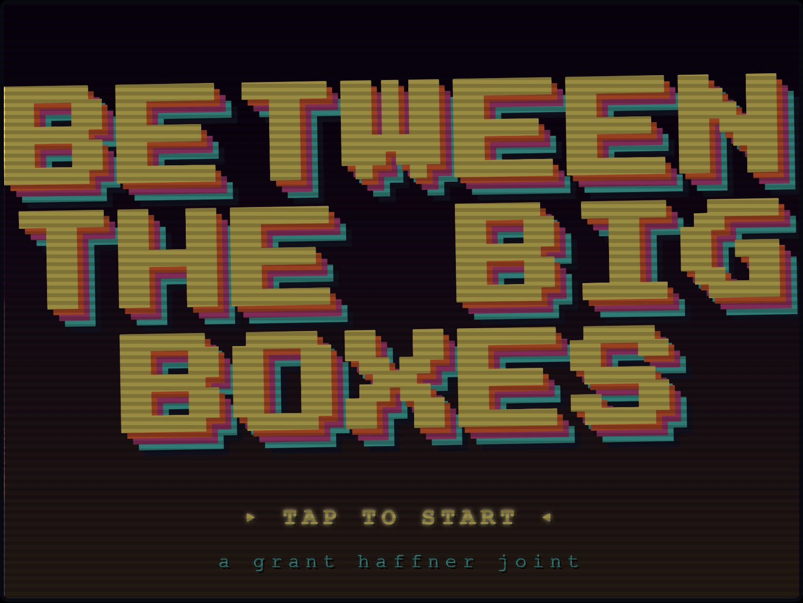 BETWEEN THE BIG BOXES is a short pixel-art adventure game about the spaces nobody looks at — the wedge of scrub between two big-box stores, the back lot of an old grocery, the drainage tunnel behind the parking lot. The places that were something else before the concrete came.